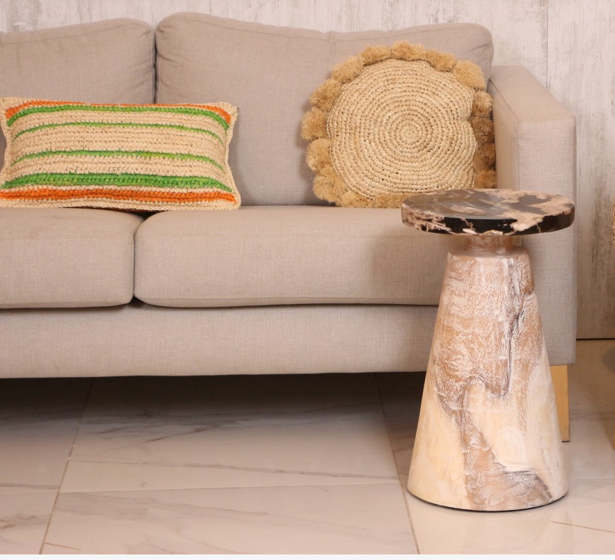 These tables, each with unique patterns and colors, combine natural beauty with timeless aesthetics. With their solid and durable structure, they stand out as both functional and decorative pieces. Fossilized wood brings the traces of nature into modern living spaces, offering an eco-friendly and aesthetically pleasing choice. With its distinctive texture, each table is a unique work of art.