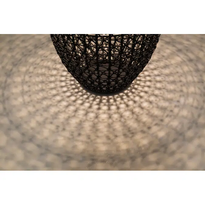 Cordless lamps constucted by an alumium frame and a hand knoted rope with an olefin rope. It includes a rechargable and powerful light diffuser. Recharge by solar power or USB-c type conector.